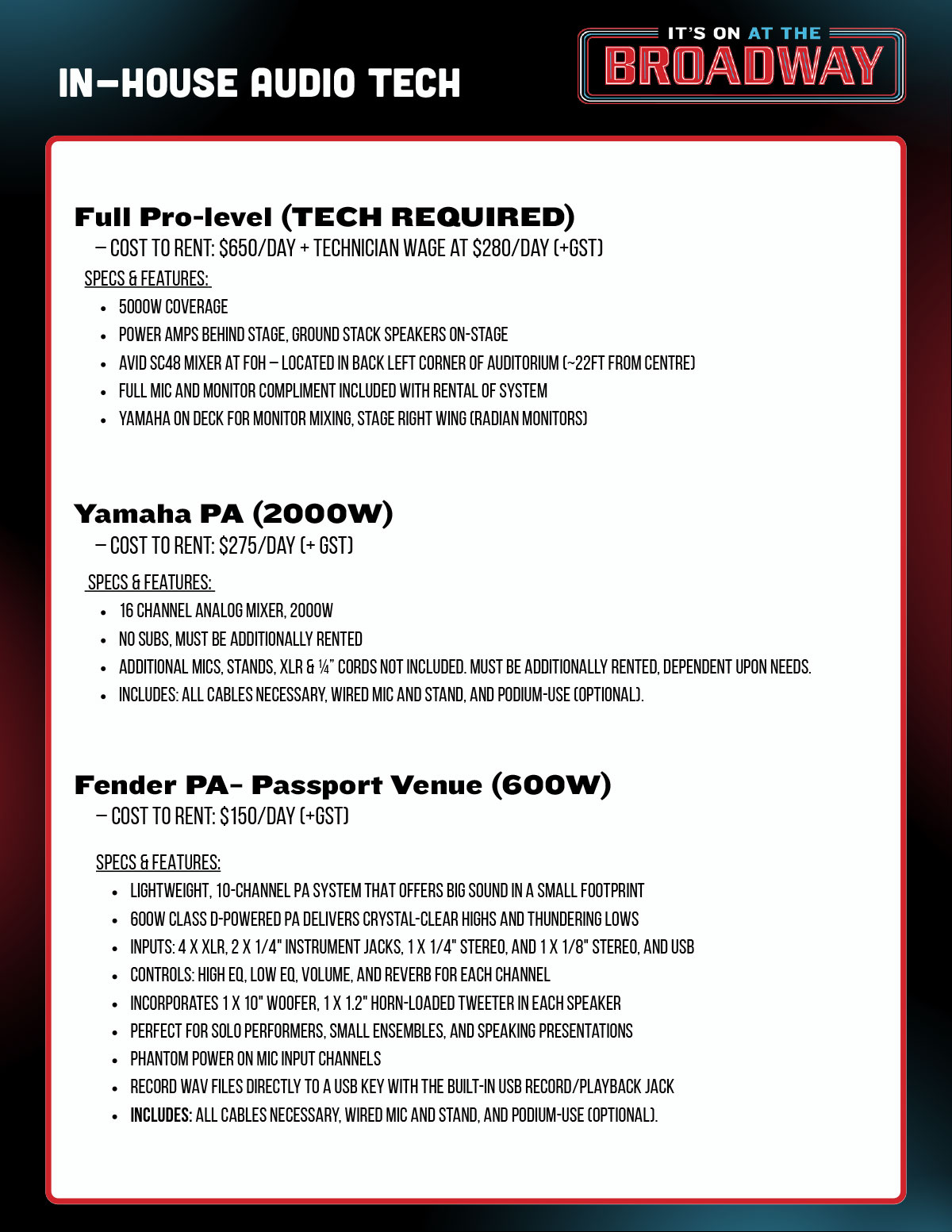These events and rentals are very important, as the wider community uses the Broadway for whatever they need, and it also provides necessary revenues.